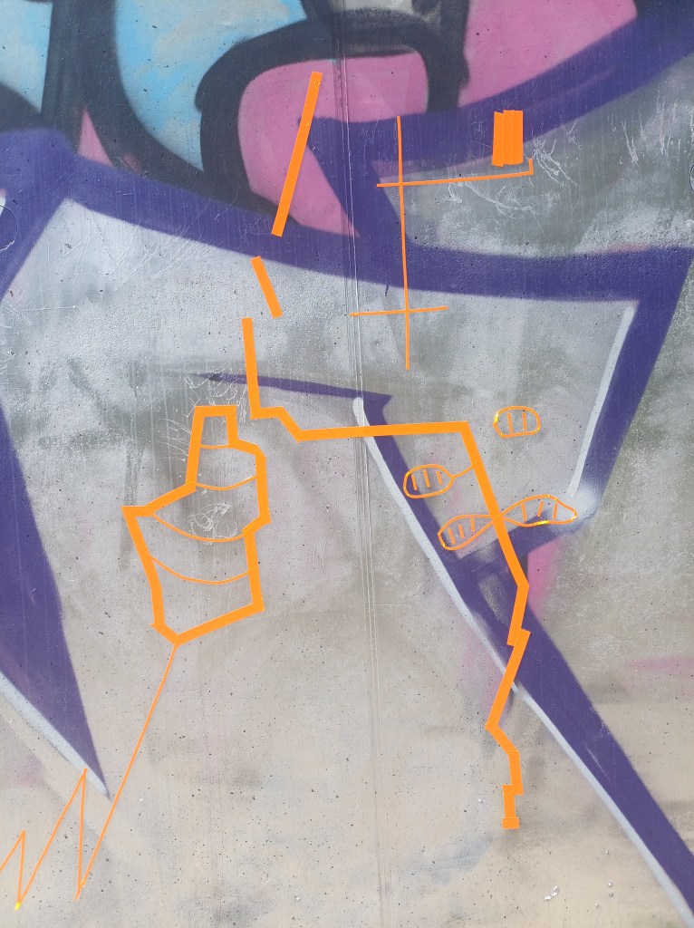Based on my own walk, in which the trajectory of my route was decided by “things orange” I would spot along the way, I asked the other artists to follow a certain colour for 10 minutes whilst intuitively drawing their route.