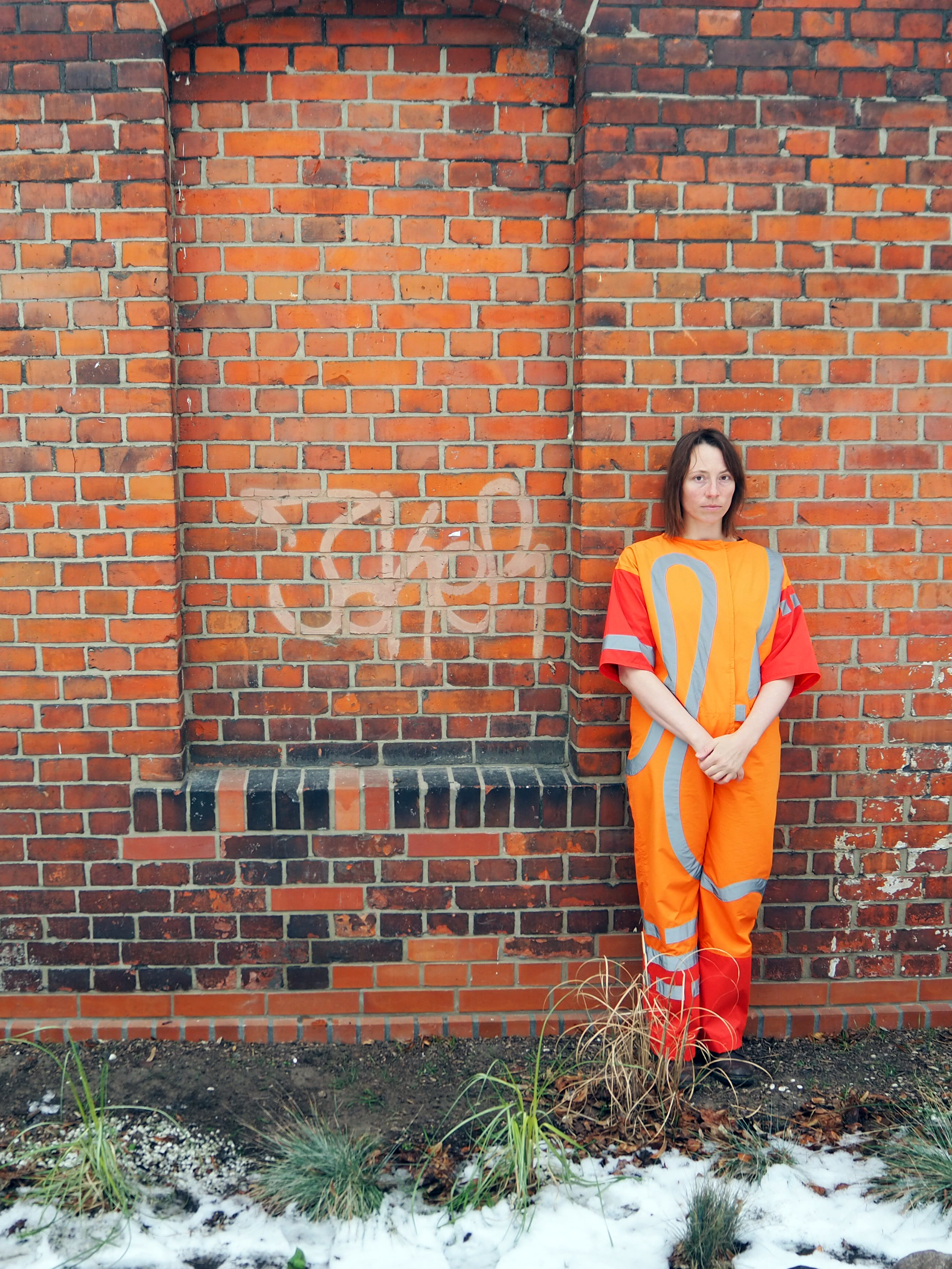 After the project, I compared the 12-hour walks I did in Brussels as well as in Berlin. The colour orange was just as prominent as the insane amount of construction works in both cities. This resulted in the creation of a worker-suit: a hand-tailored, bright orange workwear-suit with reflective patterns on it, referring to the suit construction workers generally wear.