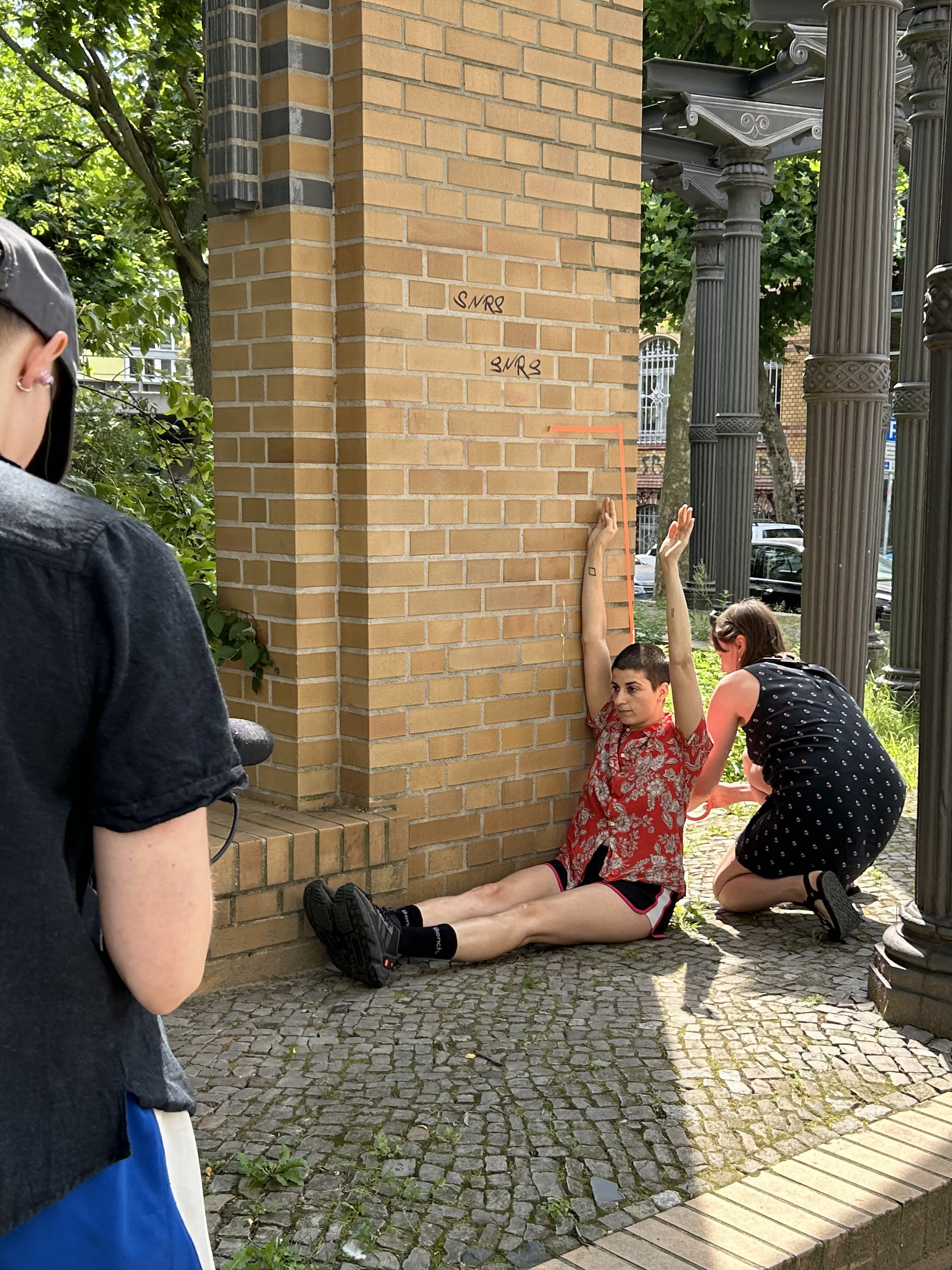 Together with Ari David I conducted some bodily interventions: small in-situ performances that concentrated on mapping our bodies in public space.